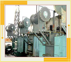 A Power Transformer characterized by inner and outer low voltage winding sections and a high voltage winding section disposed there between. The low voltage windings are comprised of a plurality of pancake coils, and the high voltage winding are comprised of a plurality of conductor strands spirally wound for a plurality of coil layers. The low and high voltage winding sections are laterally spaced with the low voltage windings disposed in side-by-side positions and adjacent to the high voltage windings. The high voltage windings having a smaller turn height than the low voltage windings and having conductor strands of smaller gauge than the pancake coils of the low voltage windings. |